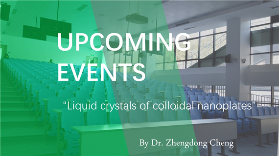 Title: Liquid crystals of colloidal nanoplatesSpeaker: Prof. Zhengdong Cheng (Dept. Chem. Eng. in Texas A&M University, USA)Time: 13:00 – 13:45 ,Wednesday, Dec. 27th, 2017Venue: Rm E209, Education building, GTIIT Abstract: Colloidal anisotropic platelets are model systems for discotic liquid crystal investigation. We have systematically studied the ZrP monolayers due to the capability to control t...