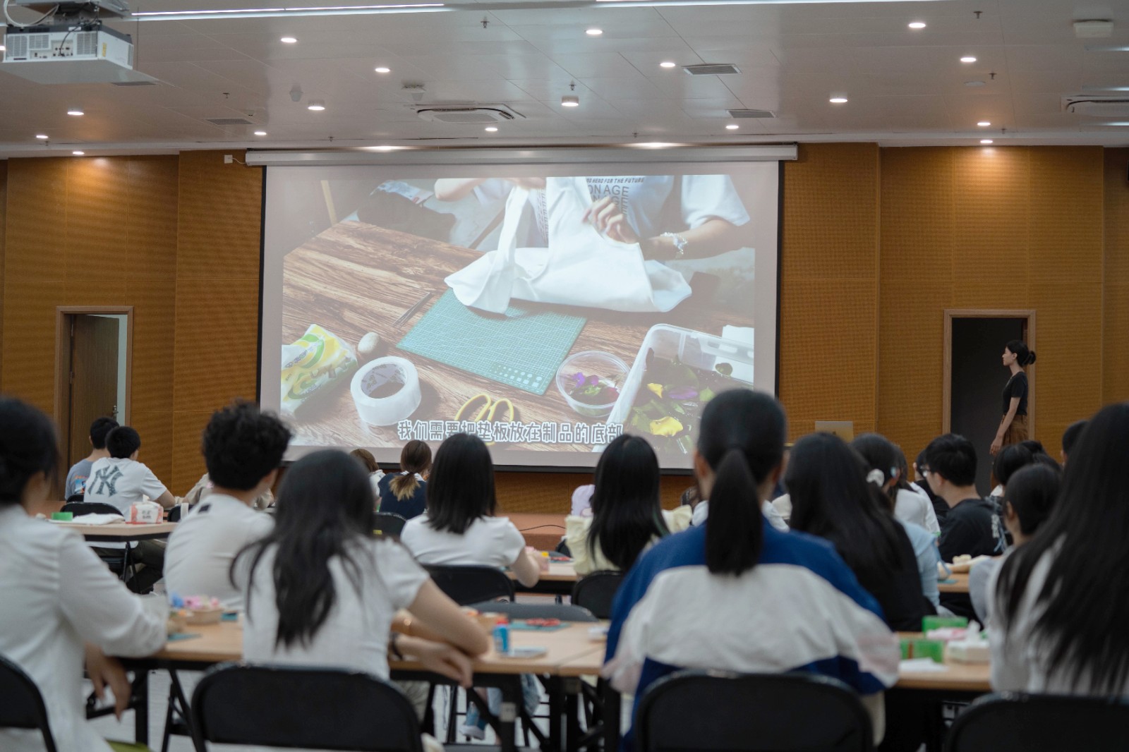At the workshop, flowers and leaves found new life under creative hands. Arranged thoughtfully on eco-bags, their veins and hues left natural imprints, carrying wishes for the upcoming university life and a cultural highlight for the new semester.