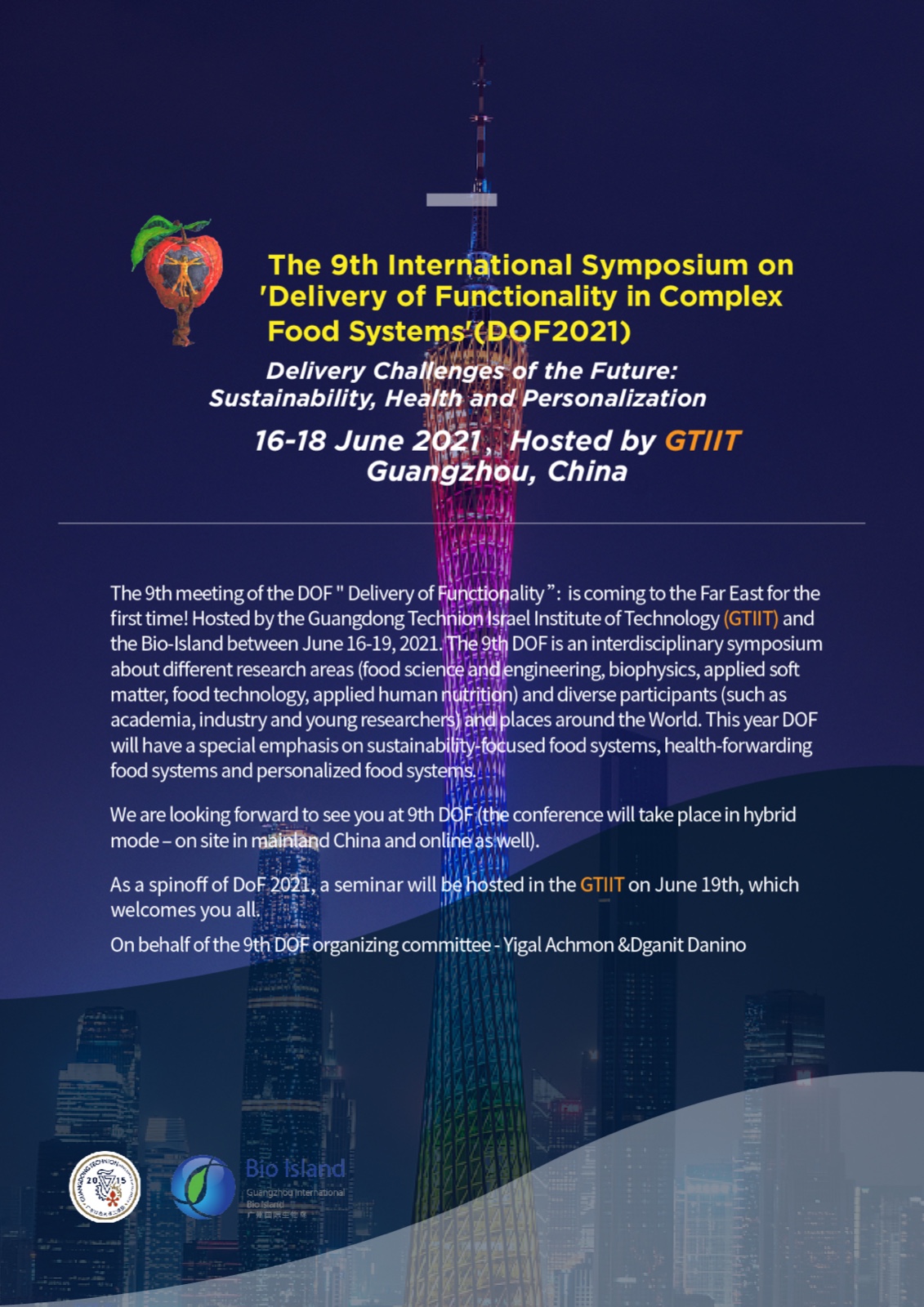 The 9th meeting of the DOF "Delivery of Functionality”is coming to the Far East for the first time hosted by the Guangdong Technion Israel Institute of Technology (GTIIT) and the Bio-Island between June 16-19, 2021.