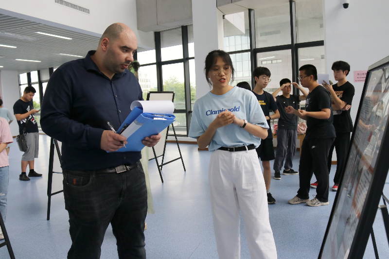 7 judges were invited to the poster presentation. They assessed the overall performance of the group and the individual performance respectively, and comprehensively evaluated the students’ performance from the aspects of visualization, clarity, originality, accuracy, references, etc. 20 invited faculty and admin staff also asked questions and shared ideas about the students' presentations on site.
