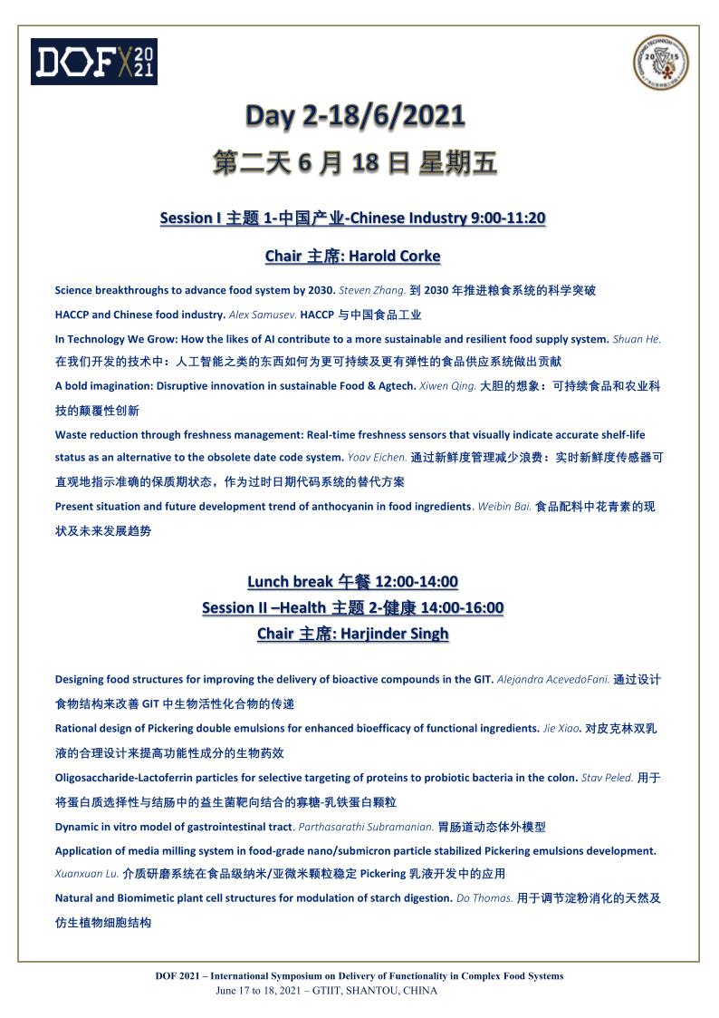 On June 18th, the symposium will pay special emphasis on health-forwarding food systems and sustainability-focused food systems. A new theme – Chinese Industry is added as one of the sessions, which hopes to apply theoretical knowledge of food engineering into the practice of Chinese industry, promoting the long-term development of food engineering. Today the sessions will be chaired by Prof. Harold Corke and Assist. Prof. Yigal Achmon, among others.