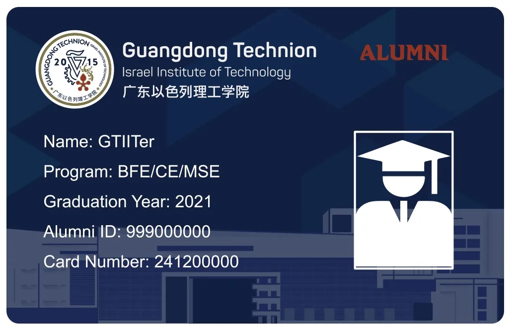 The card adopts the university logo and buildings as main design elements and continues to use the original student ID as the alumni code. The card's number, No. 241, refers to the university's street number. It is a limited edition card tailored to GTIITers. Come on and apply for it!