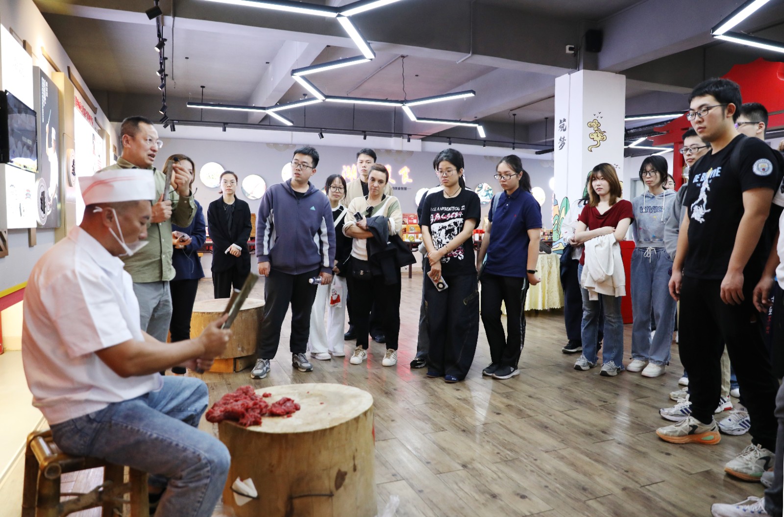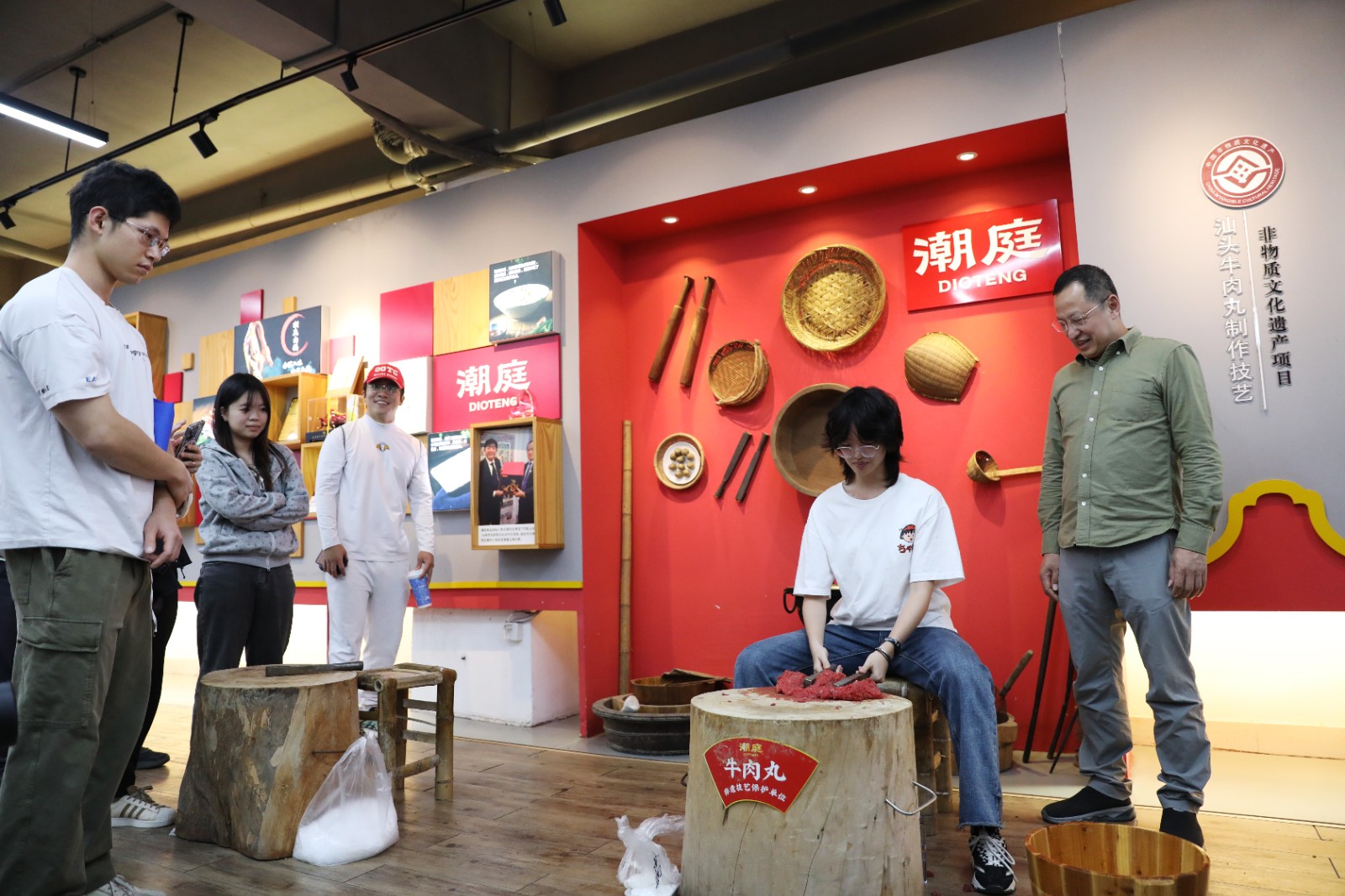 Under the guidance of Chen Zhibin, founder of Shantou Chaoting Foods, students took turns wielding hefty mallets, pounding meat into silky paste—experiencing how thousands of strikes turned into signature springy bite.