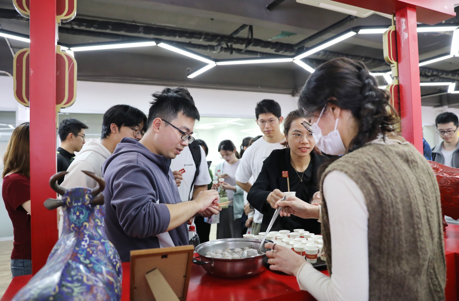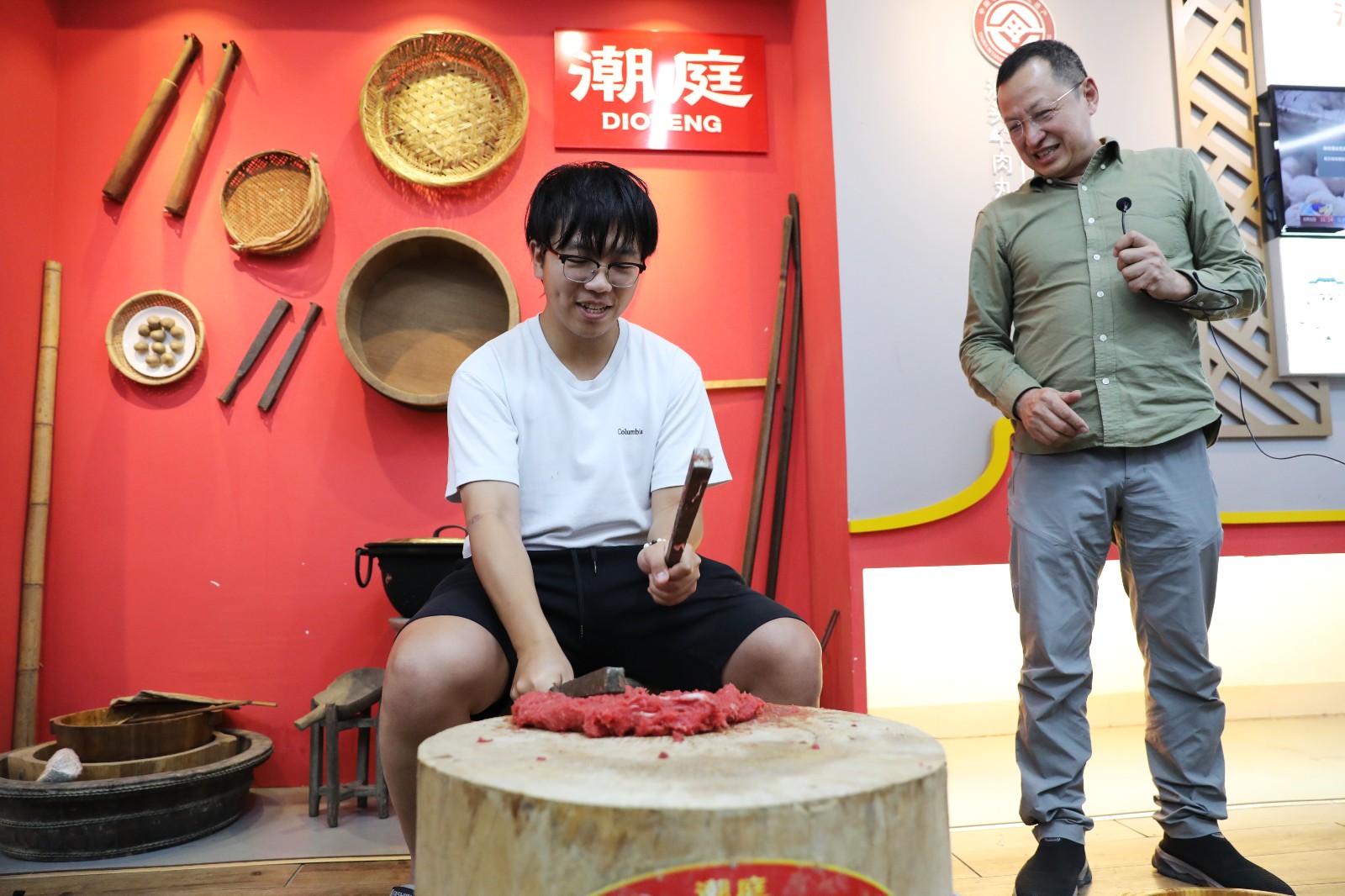 "Thud! Thud!" The rhythmic hammering echoed through the exhibition hall. The next stop was connected to a local intangible cultural heritage, authentic hand-pounded beef balls.
