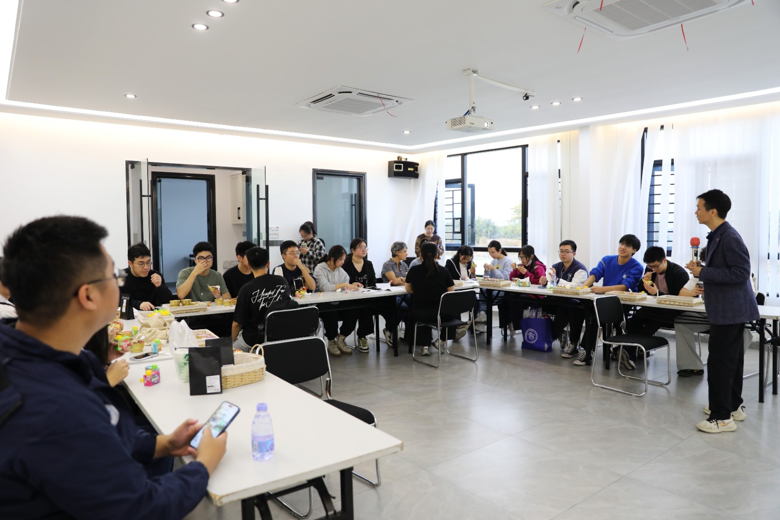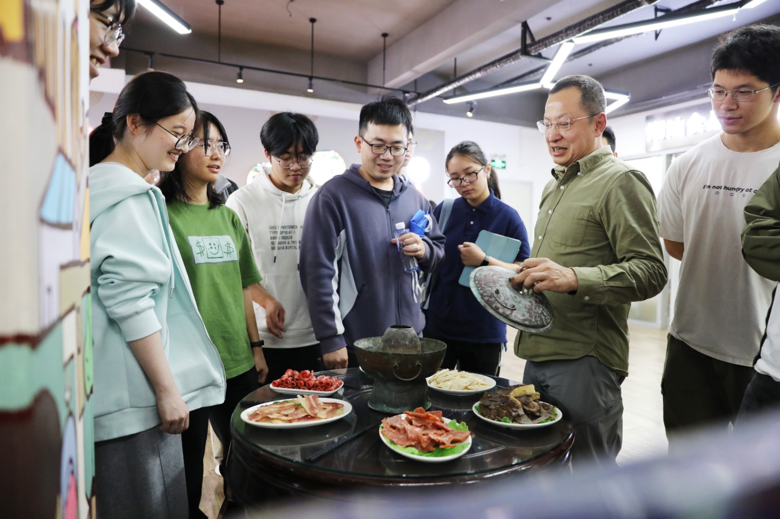 During a Q&A session, students asked questions about food standardization, supply chains, and how traditional Chaozhou flavors scale globally, exploring the big knowledge system behind a small beef ball.