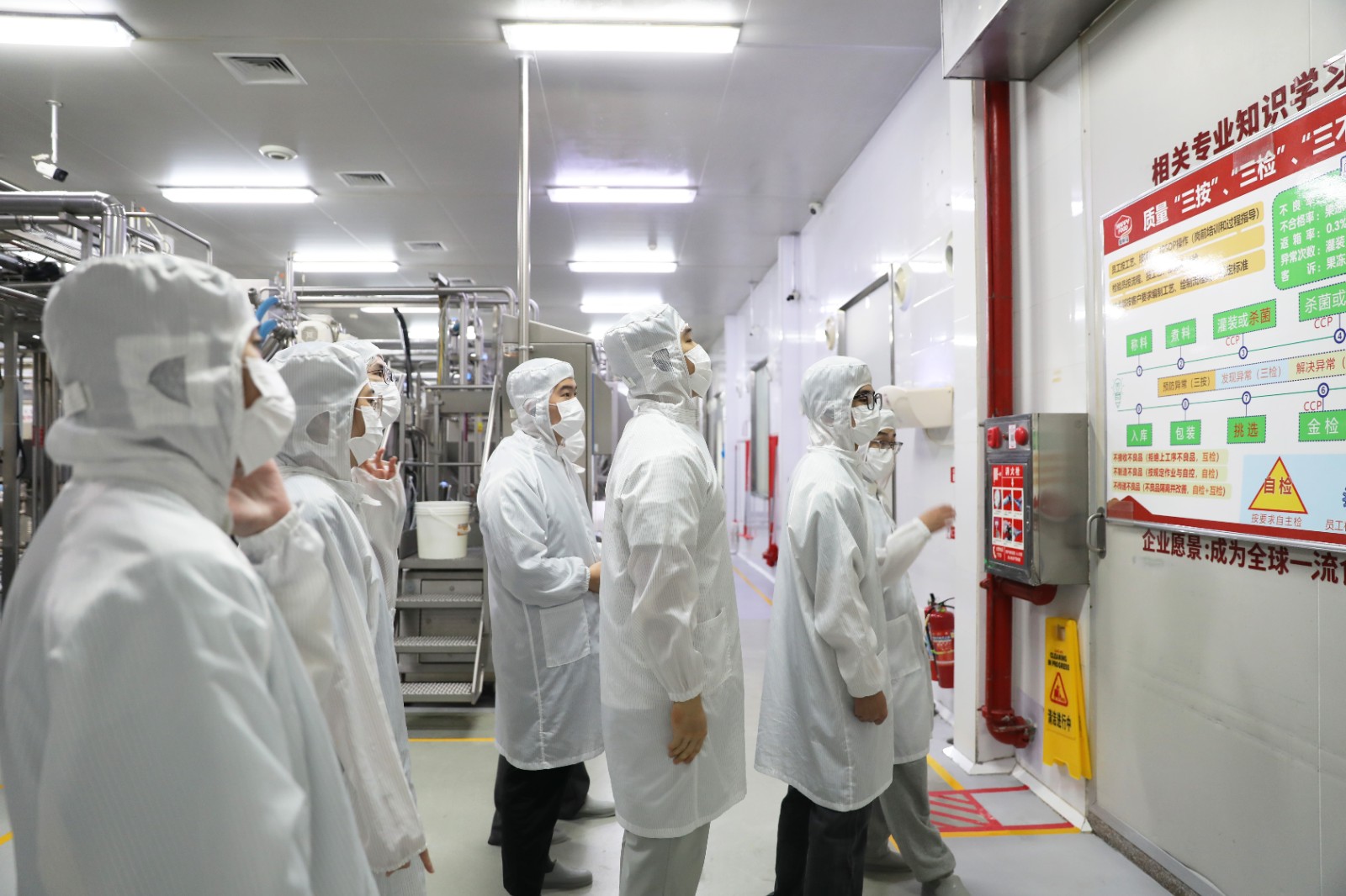 Before entering production areas, they underwent rigorous sterilization: changing into protective gear, sanitizing hands, and passing through air showers—experiencing firsthand the zero-tolerance hygiene standards behind packaged snacks.