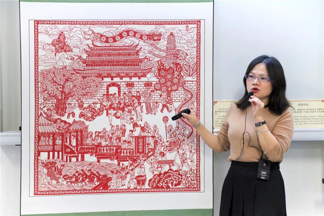 Ms. Huang Shaoqiong and her assistants gave one-on-one guidance to the students. They not only introduced the basic knowledge of paper-cutting to the participants, but also taught them how to cut out different patterns. Finally, everyone finished their own beautiful works. Someone even tailored their favorite images according to their own preferences.
