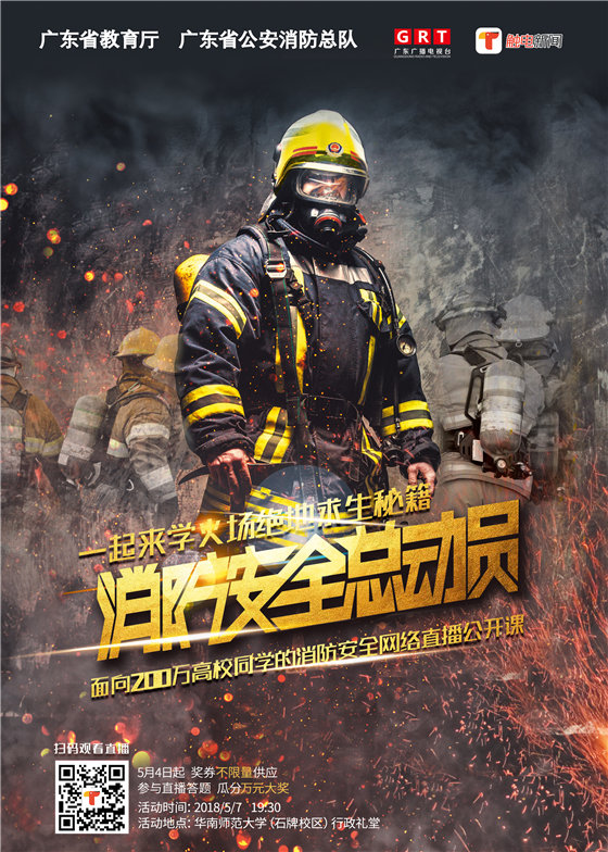 火灾发生的原因有哪些?日常生活如何有效防范火灾?什么是燃点?什么是爆破极限?救火的办法有哪几种?ABC干粉灭火器能平息哪些火灾?一旦发生火灾,我们如何逃生?...... 这些问题你能回答几个?又能答对几个?你和这些知识只有一场公开课的距离!全省高校消防安全网络直播公开课活动将于5月7日举办请同学们留意收看。 时间:5月7日,19:30 -- 21:00观看方式:网络直播、“触电新闻”APP同步直播文:GTIIT传媒...