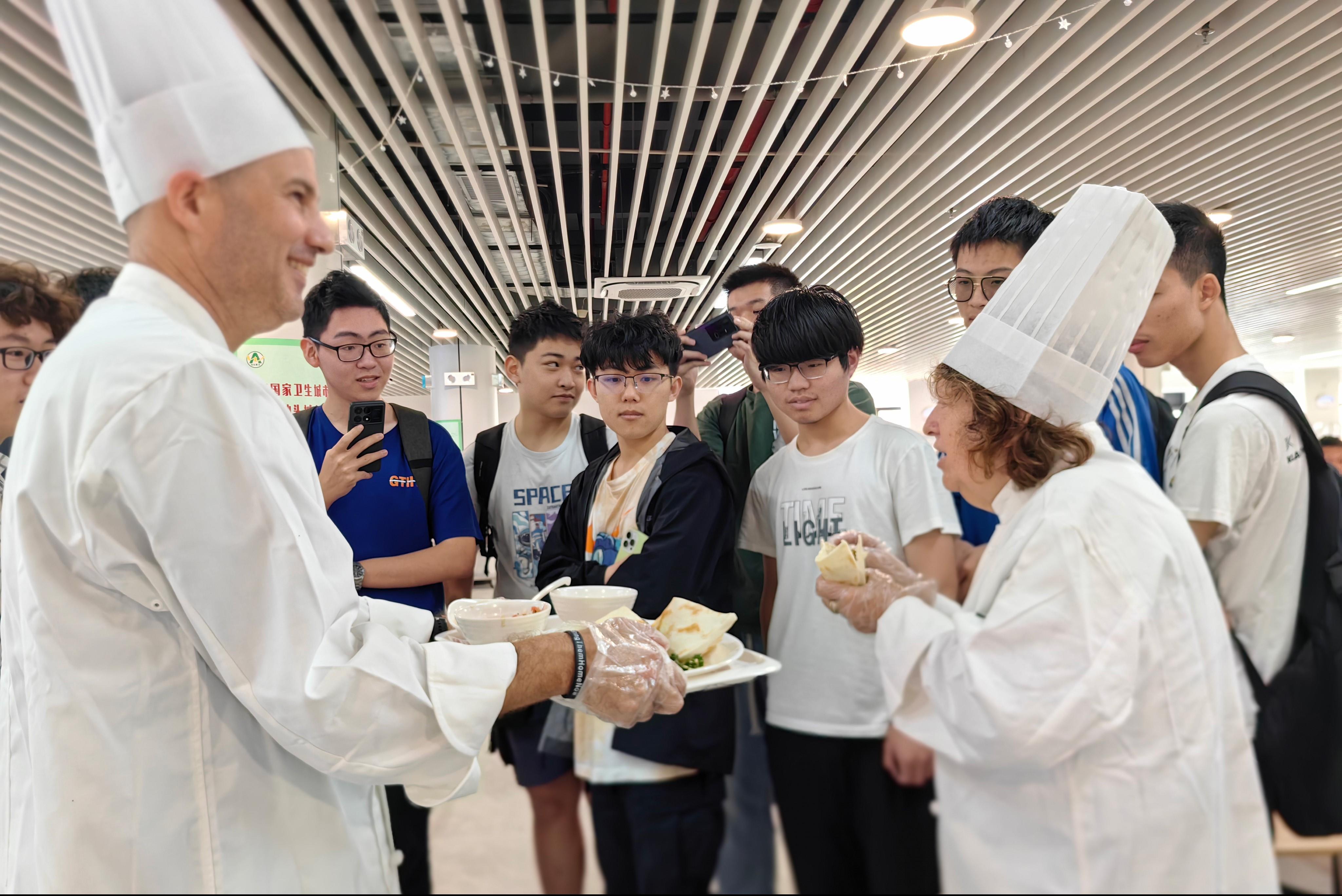 入味鲜嫩的牛肉串、松软可口的皮塔面包、油炸酥香的鹰嘴豆丸子、清爽可口的沙拉……在近日举办的广以“以色列美食节”中,一道道精心烹制的美味佳肴纷纷上场,以浓郁的地域风味,为广以师生解锁味蕾新体验。午餐时段,南北校区食堂的摊点前人头攒动,美食飘香。风味俱佳的以色列美食映入眼帘,送至口中,为同学们带来百味纷呈的舌尖美妙。一位学生表示,这是他第一次尝试以色列食物,“感觉很新奇,搭配也很多样化”。现场氛围热烈,互动不断。在一片欢...