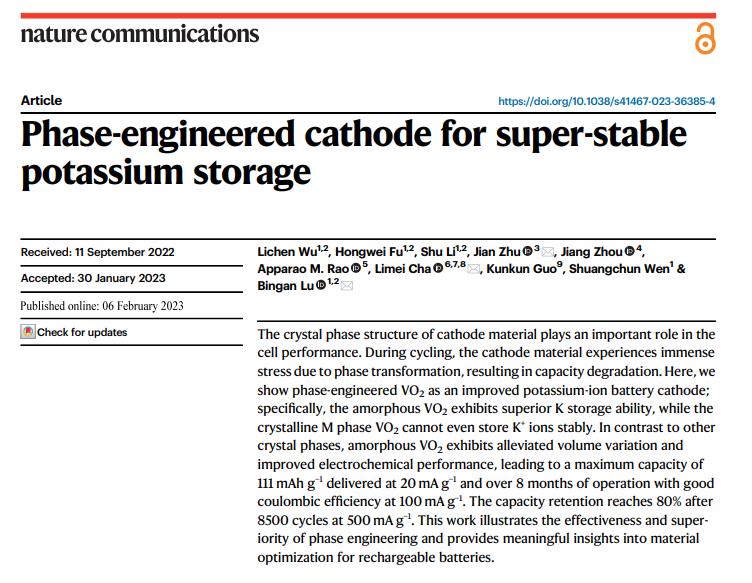近日,以广东以色列理工学院电镜中心(EMC)主任茶丽梅博士作为共同通讯作者的论文《用于超稳定钾储存的相位工程阴极(Phase-engineered cathode for super-stable potassium storage)》在Nature Communications期刊上发表。该文章同时也入选了Nature Communications期刊的Highlight合集。这项研究为可充电碱性电池中所使用电极材...