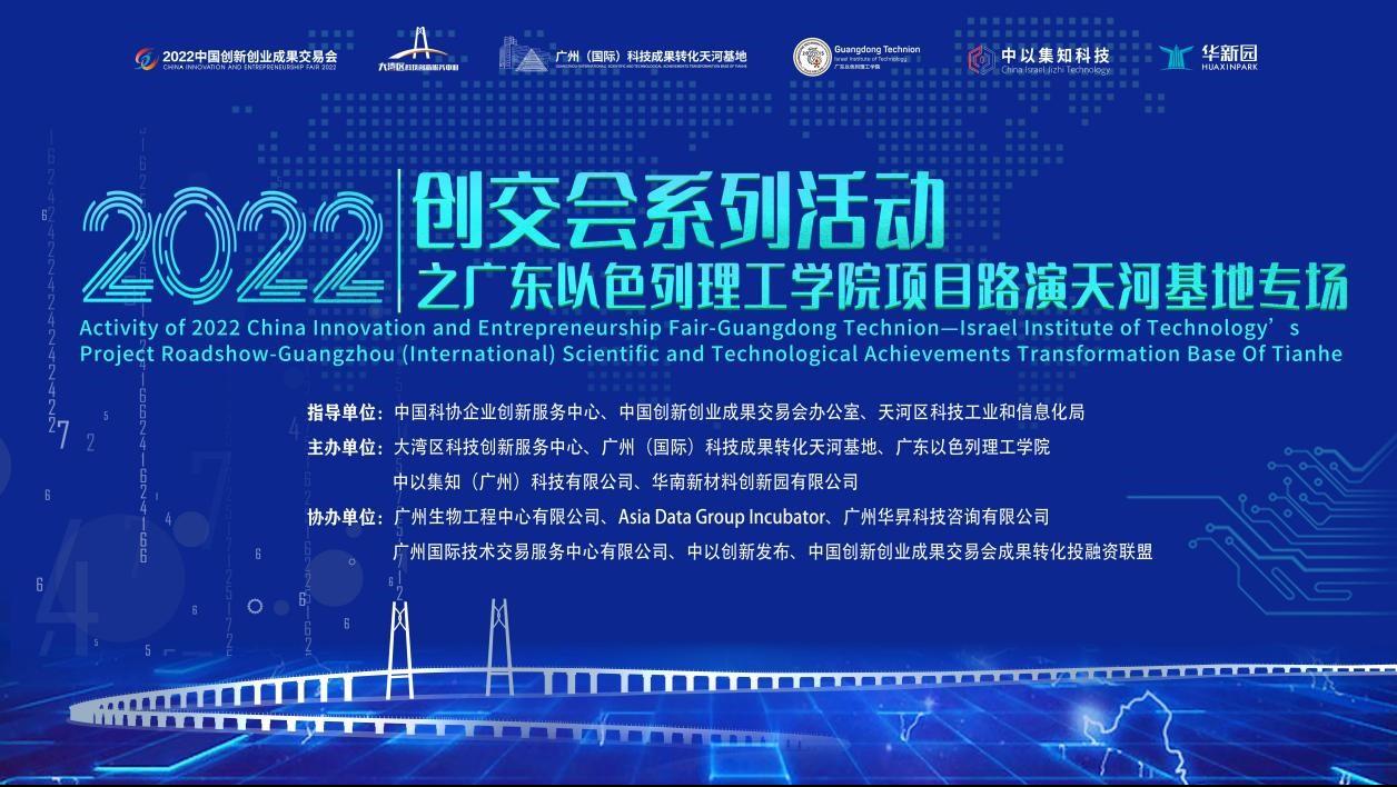 近日,2022中国创新创业成果交易会系列活动继续在广州举办。广东以色列理工学院专场科技成果路演会亮相创交会。学校团队与地方政府和企业机构深入交流,在产学研结合、成果转化等方面共商合作。“2022 创交会系列活动之广东以色列理工学院项目路演天河基地专场活动”由大湾区科技创新服务中心、广州(国际)科技成果转化天河基地、广东以色列理工学院、中以集知(广州)科技有限公司和华南新材料创新园有限公司主办。广州市科学技术协会创新发...