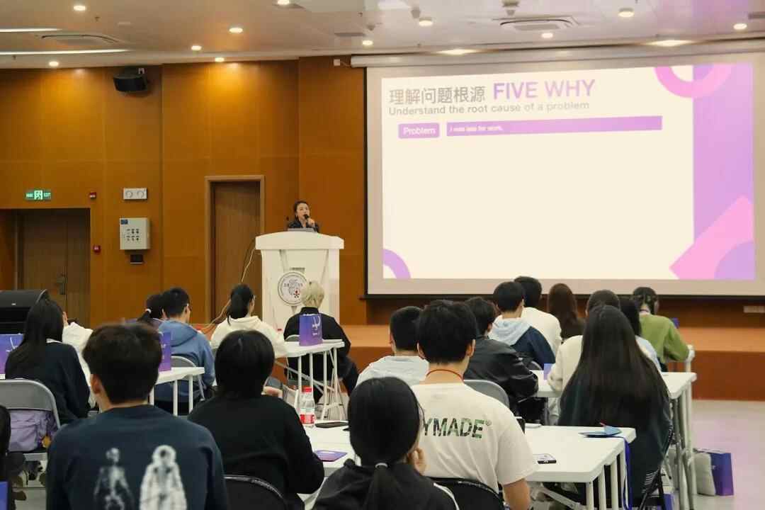 赛事期间,活动主办方组织了多场“干货满满”的主题讲座。在创新思维讲座上,广以创业商社指导老师王侃侃从发现问题、挖掘问题根源到应用不同思维方式提出解决方案,逐步引导并激发选手的创新潜能,为商业主题锚定航向。