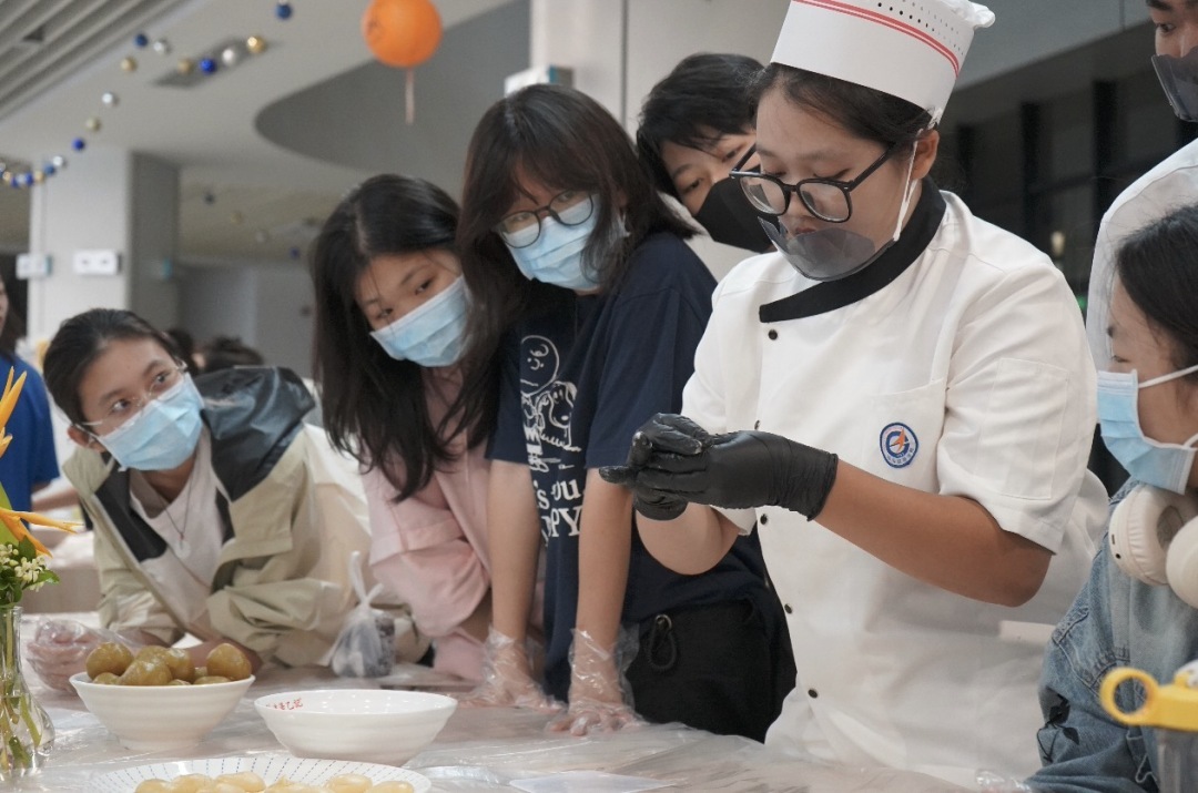 来自安徽的大一学生王曼伊分享道:“安徽月饼口味丰富,咸甜皆有,甚至还有梅菜扣肉馅的。这次能在学校亲手做广式月饼,既有趣又能深入了解本地的中秋传统,感觉特别有意义。”