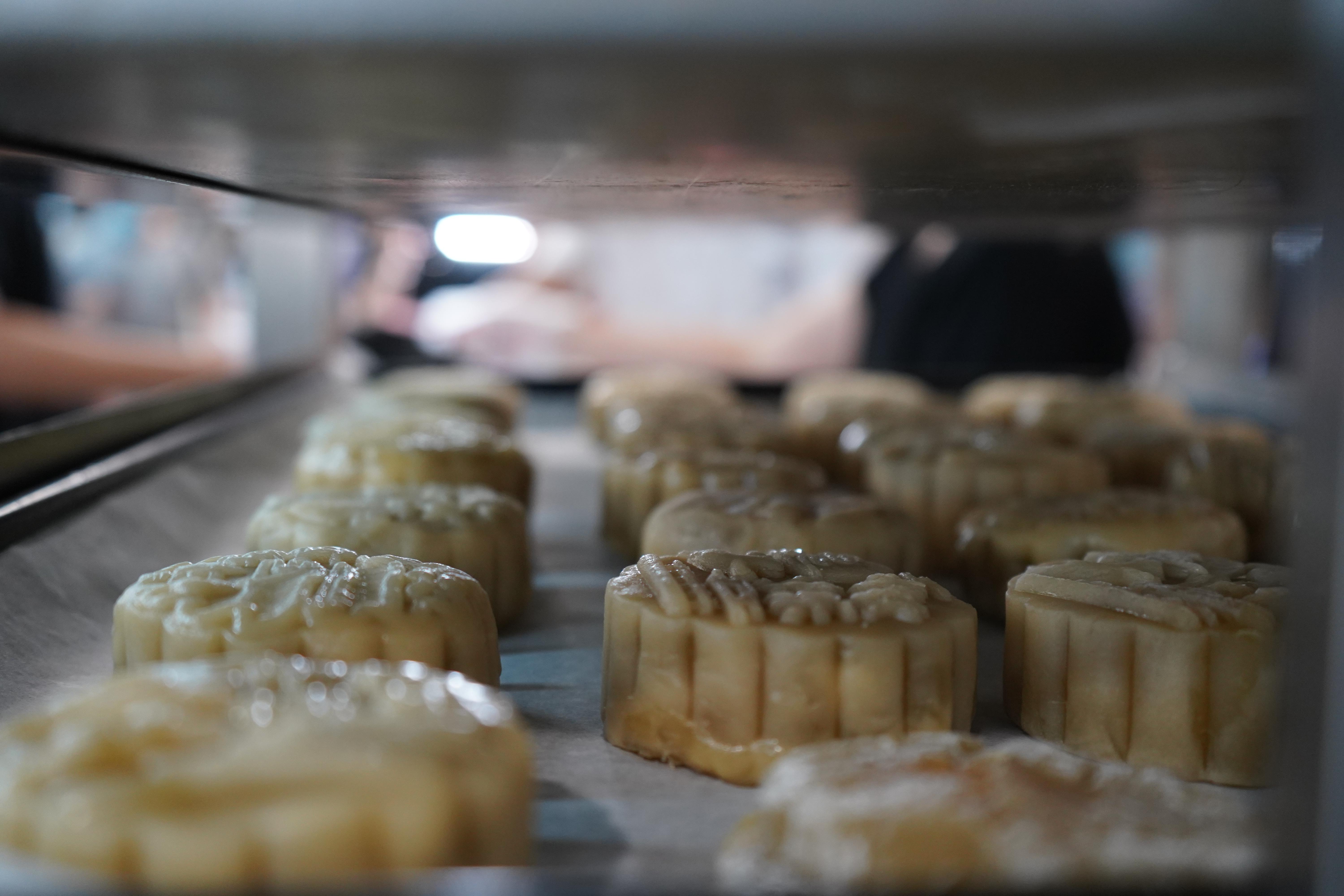 广式月饼不仅是一种美食,更承载着团圆的美好寓意。当一个个印着“中秋快乐”“大吉大利”字样的月饼交给工作人员送入烤箱烘焙时,大家脸上都洋溢着期待与喜悦。