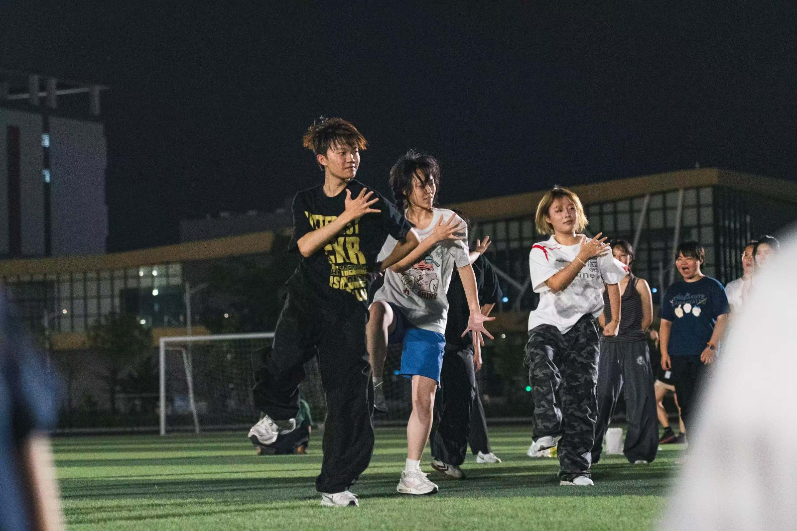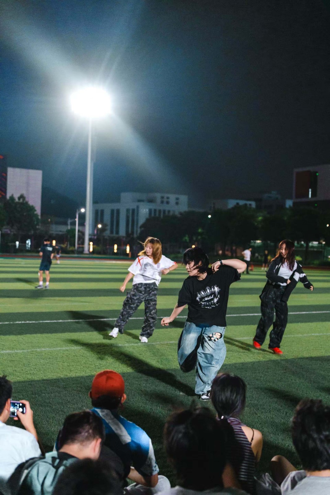 南校区操场化身为露天舞池,洋溢青春活力。由广以团委主办,音乐社、街舞社与动漫社联合举办的 “Random Dance随舞”活动精彩上演,约百名同学参与其中,用跃动的身影点亮校园。