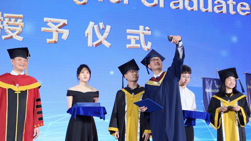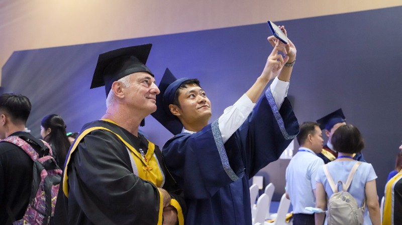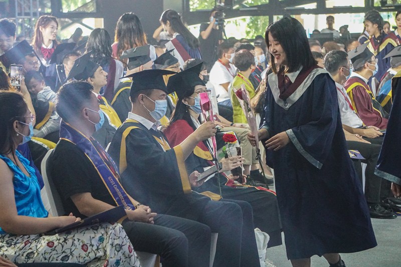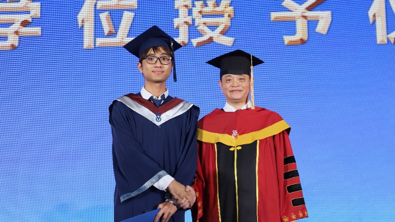 每位毕业生由校长逐一念出姓名上台接受学位授予······