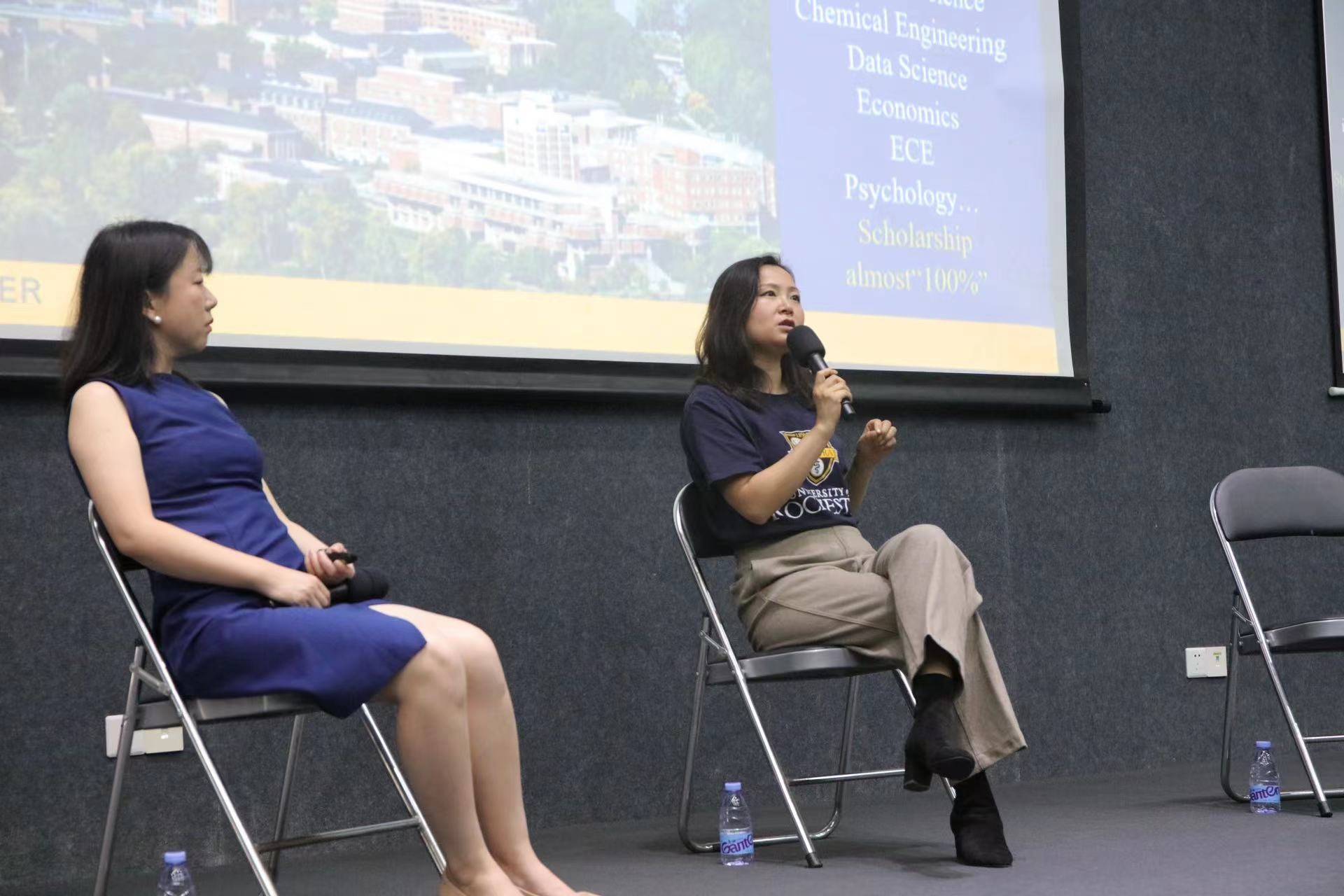 本次活动由广以和美国高校驻华联盟联合举办,来自昆山杜克大学、美国东北大学、俄亥俄州立大学、美国罗彻斯特大学、博科尼大学、米兰新美术学院、佐治亚理工学院(中国校区)、美国弗吉尼亚大学等多所海外名校招生官齐聚广以,为有志海外升学的广以学子答疑解惑。