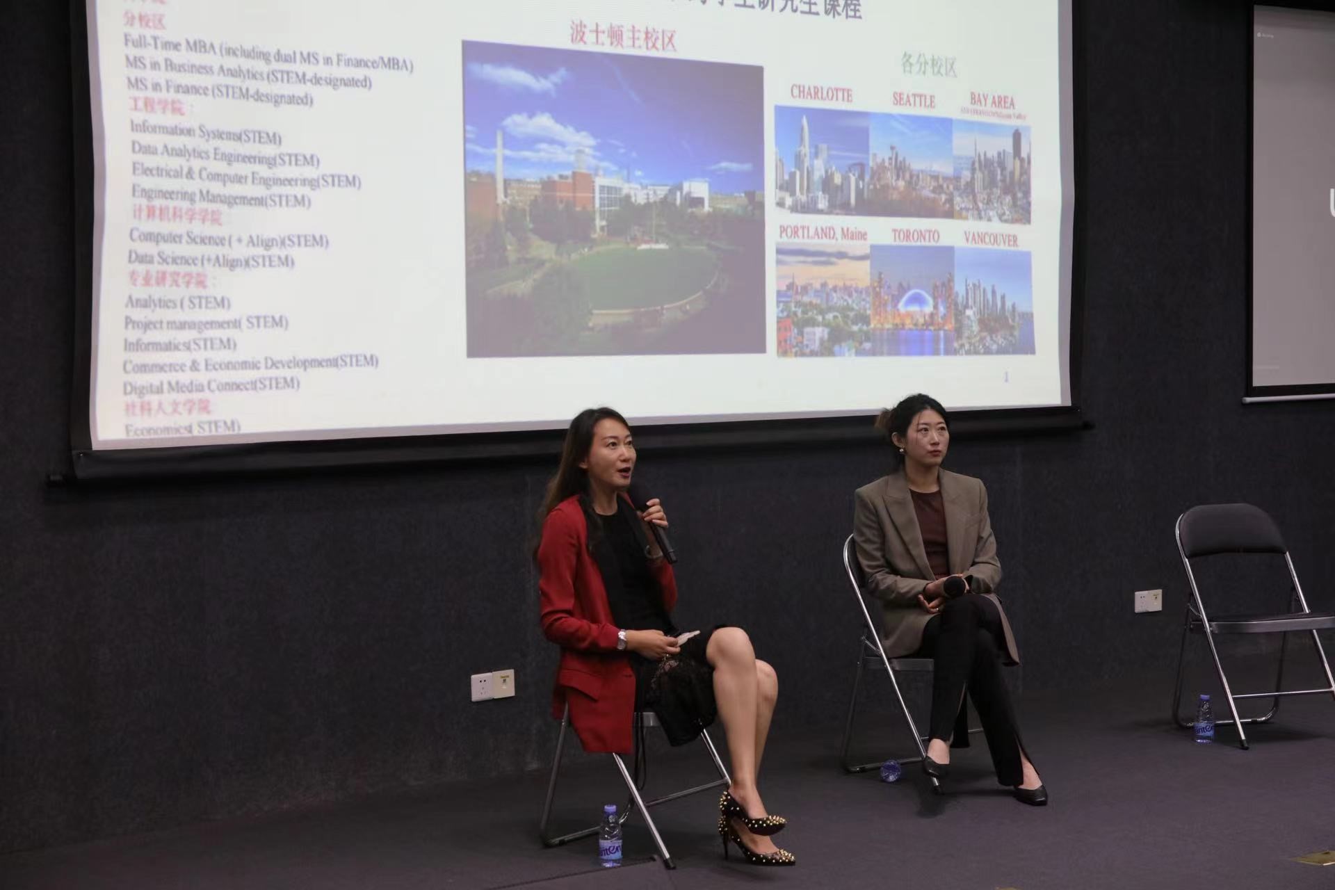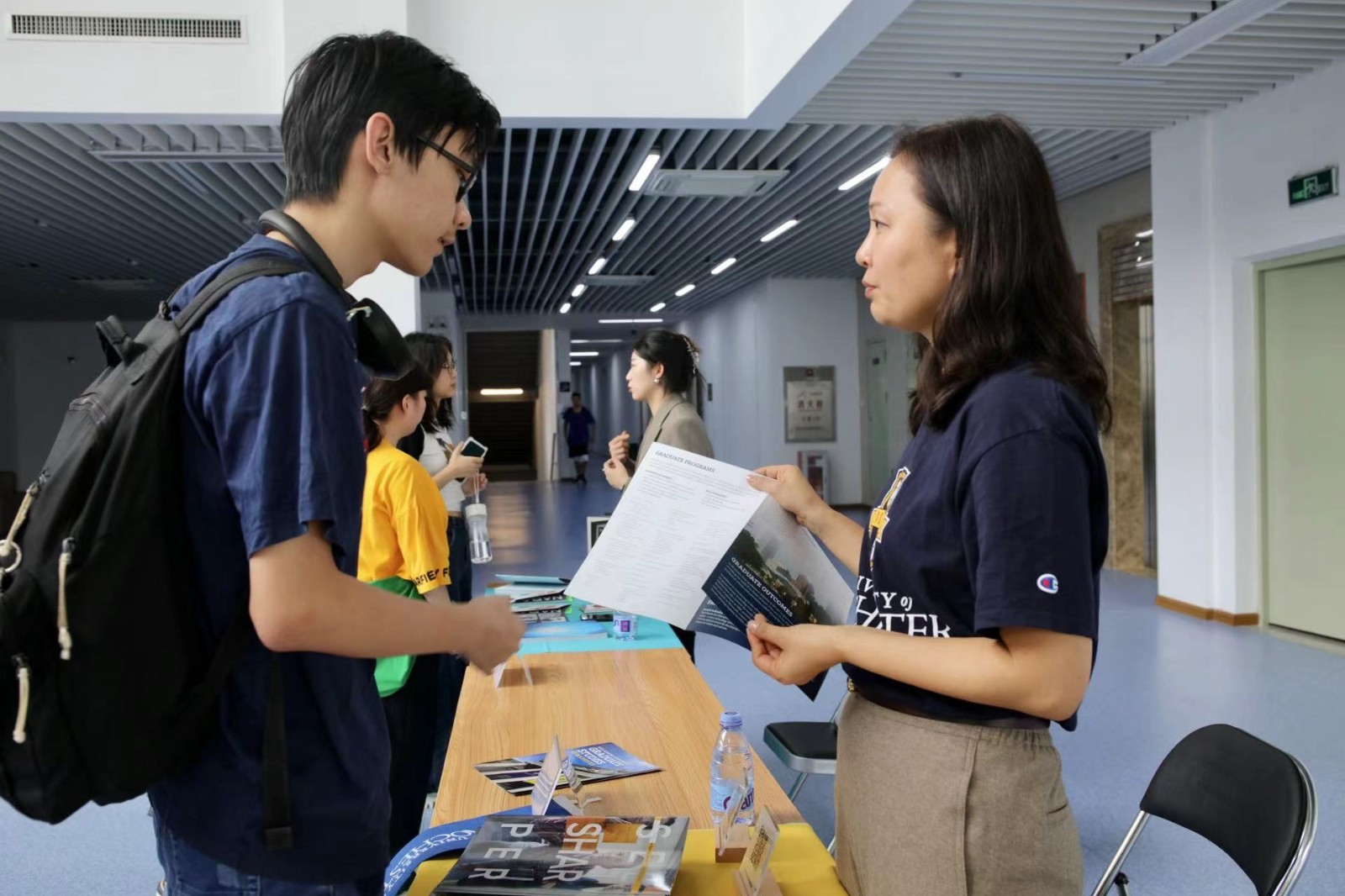 在随后的展会环节,同学们针对招生政策、录取情况、申请审核过程、奖学金政策、课程设置等问题,与招生官们踊跃交流。