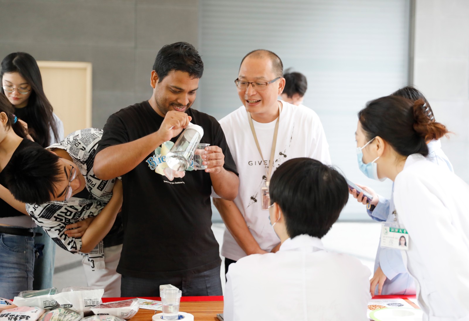 众人围簇中,工作人员积极分发营养膳食指南,悉心讲解成年人每日应摄入的食物种类及合理数量。汕大附一的医师们耐心地为驻足询问的师生答疑,提供专业细致的食养建议。