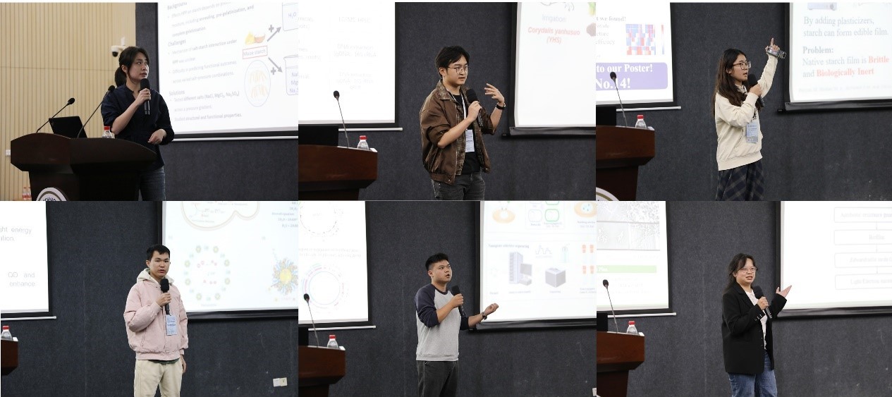 本次国际会议更加彰显了薪火相传的精神内核,给予了年轻一代科研学子展现独特科研魅力与风貌的平台。作为亮点之一,本次研讨会特设“学术快闪” 挑战赛,参赛学生在完成海报制作的同时,为其度身定做相应的1min 介绍PPT Presentation,其目的不但在于向专家们精要地展示科研成果,更在于通过演讲使自己的研究成果更具吸引性,激发专家到个人海报前听取详细讲解的兴趣。这一创新设计不仅锤炼了青年学子的高效表达能力,更打破了传统学术交流壁垒,为鼓励新生代科研力量搭建舞台。